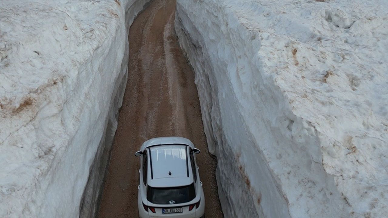 Kar duvarları arasında kalan yol